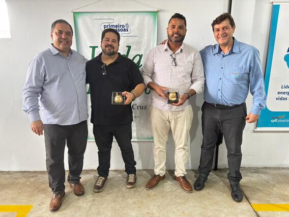 Esq. p/ dir. Osvanil Oliveira, diretor presidente da CPFL Santa Cruz; Cláudio Barboza, presidente da Câmara Municipal de Águas de Santa Bárbara; Wilian Meana, prefeito do município de Águas de Santa Bárbara; e Ariley Dario da Cunha, gerente de Operações de Campo.