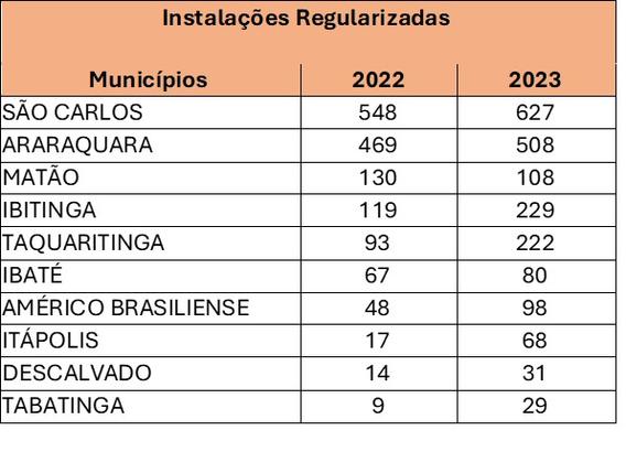 Na região, equipes da distribuidora realizaram inspeções em residências, comércios e indústrias e regularizaram 2.063 instalações no ano passado. A cidade da região com mais instalações regularizadas foi São Carlos, com 627 unidades, 14,4% acima do ano anterior. Já em Araraquara, outra importante cidade da região, foram 508 regularizações.