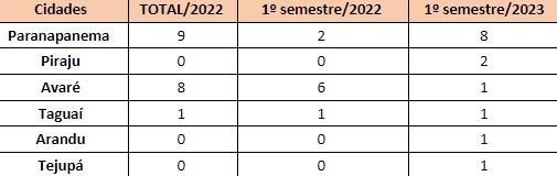 Na região de Avaré, as queimadas causaram 14 ocorrências de interrupção no fornecimento de energia no primeiro semestre de 2023. Em todo o ano de 2022 foram 25 casos. O levantamento, feito pelo Centro de Operações da CPFL Santa Cruz, considerou interferências provocadas na rede de distribuição por incêndios de todas as proporções, em área urbana ou rural.