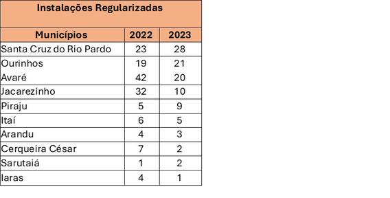 Na região de Ourinhos, equipes da distribuidora realizaram inspeções em residências, comércios e indústrias e regularizaram mais de 100 instalações. A cidade da região com mais instalações regularizadas foi Santa Cruz do Rio Pardo, com 28 unidades, um aumento de 21,7% em relação ao ano anterior.