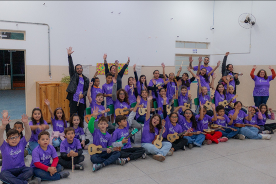 O colega Rick Barros, responsável pelas turmas de ukulelê, reforça o impacto do trabalho em grupo: “A música é uma ferramenta poderosa para o desenvolvimento cognitivo, social e afetivo. Ao mesmo tempo em que aprendem a tocar, as crianças vivenciam valores como respeito, solidariedade e cooperação, essenciais para a vida em comunidade.”